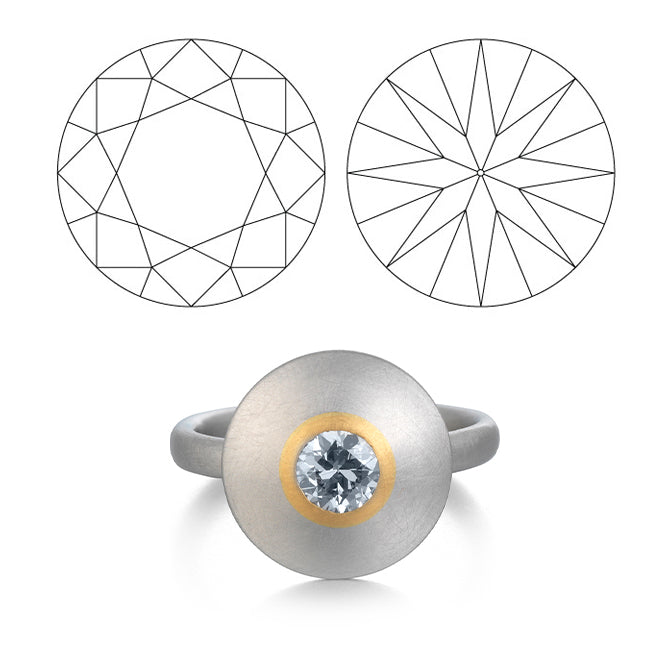 The Round Brilliant ‘ideal’ Cut represents more than six centuries of evolution of diamond design and diamond cutting skill, combined with intensive research into how light travels through diamonds. As the manner in which we light our living environment has changed, so has the manner in which we cut diamonds for optimum visual performance.