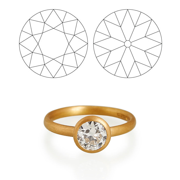The Old European cut is a wonderful antique diamond cut popular from the late 19th to mid 20th century. They succeeded the Old Mine cut and share many of the same handcrafted characteristics: higher crowns, smaller tables, larger, open culets and varied proportions.