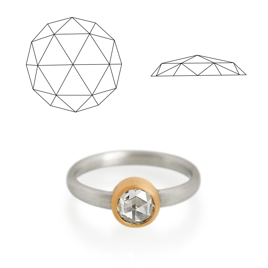 The Rose Cut produces a diamond that is flat on the bottom and domed at the top with a varying number of triangular facets (24 in a full rose cut as shown). The cut performed beautifully in the only available light at the time—candlelight—creating a soft sparkle rather than the bright light of the more modern brilliant cut.